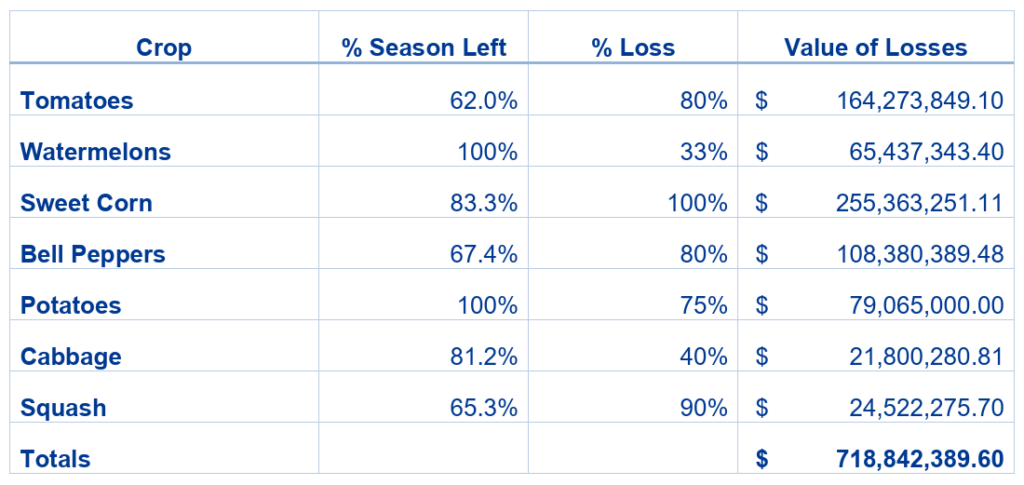 The storms primarily hit critical areas for the production of vegetables, melons, citrus, sugarcane, fruits, horticulture, and aquaculture. Many growers found their crops were not ready for harvest due to adverse weather conditions, labor shortages, and a lack of proper storage facilities. As a result, agricultural producers now face daunting economic challenges and a longer path to recovery.